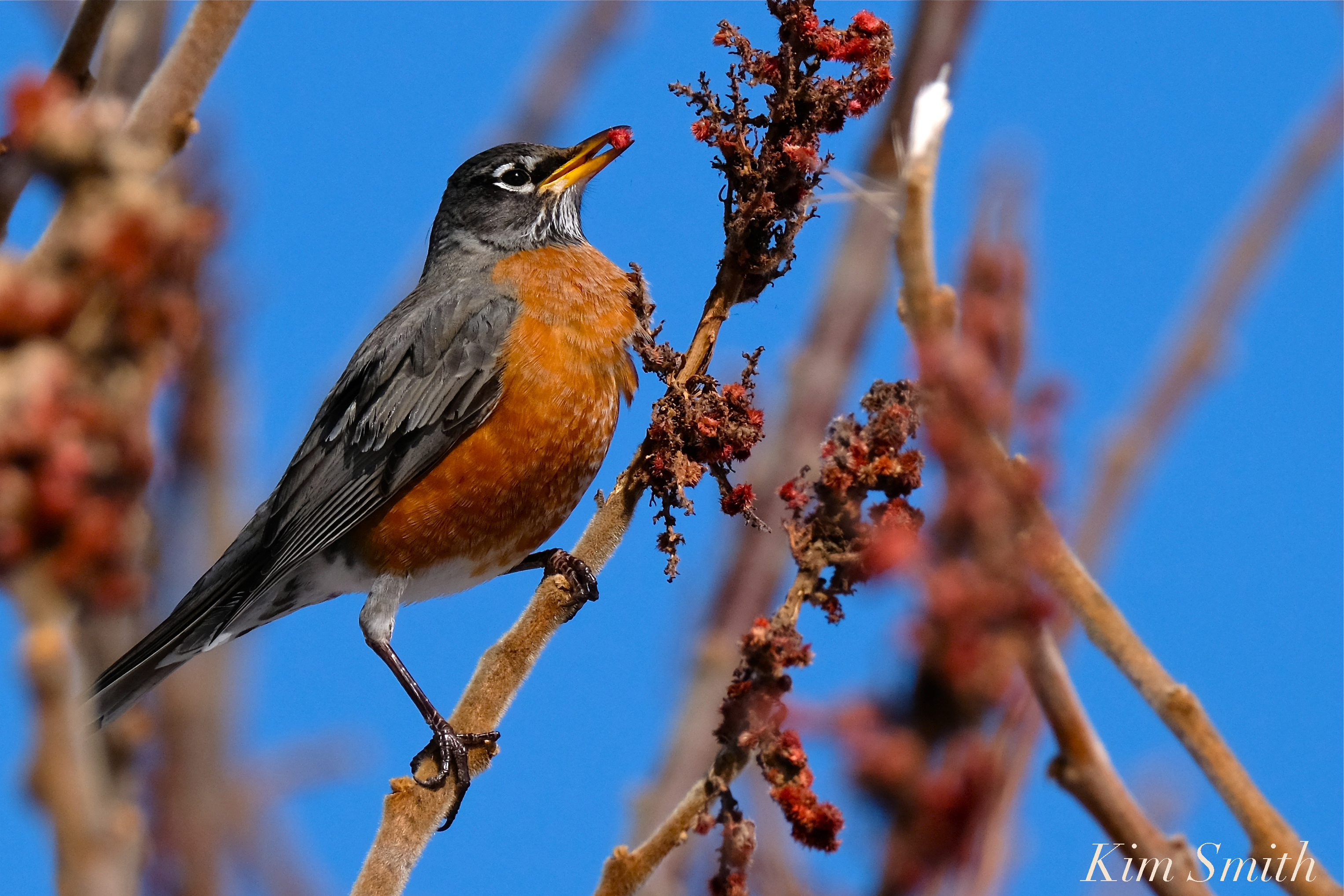 Flock of American Robins Eating Sumac, Halibut Point Rockport