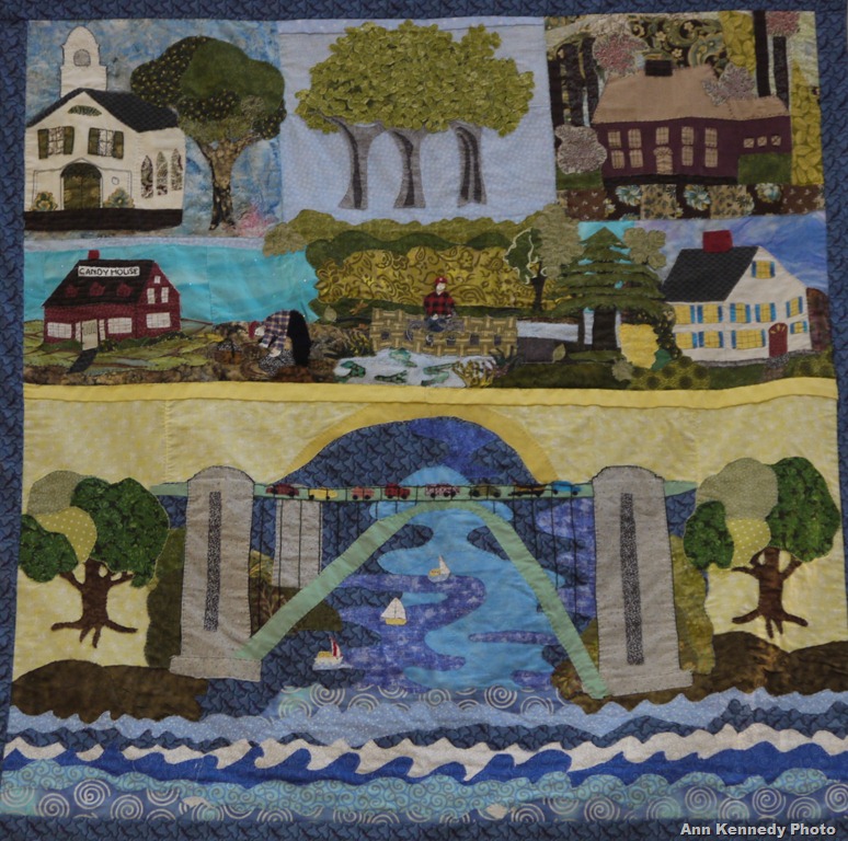 Saw the 8 marvelous quilts hanging in the Sawyer Free Library… each representing the special ethos and heritage of a Gloucester neighborhood. My photos do not do justice, but all 8 quilts are really delightful! As one who loves to walk Gloucester, they are really a treat and so representative of community pride.
