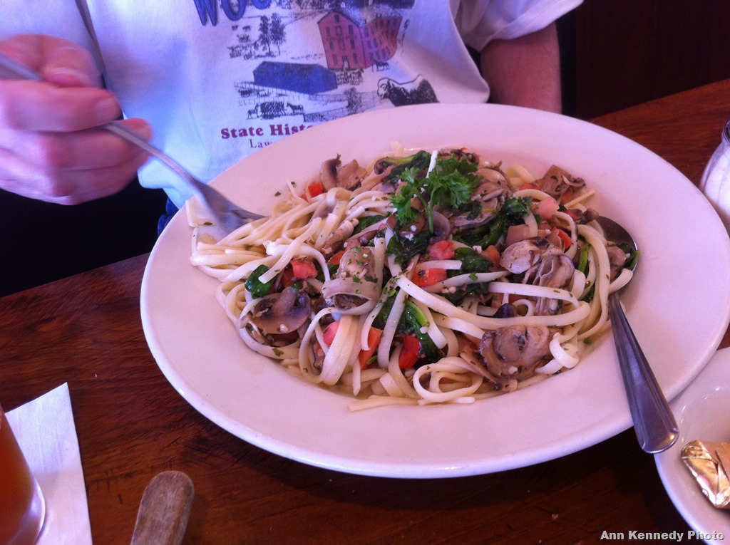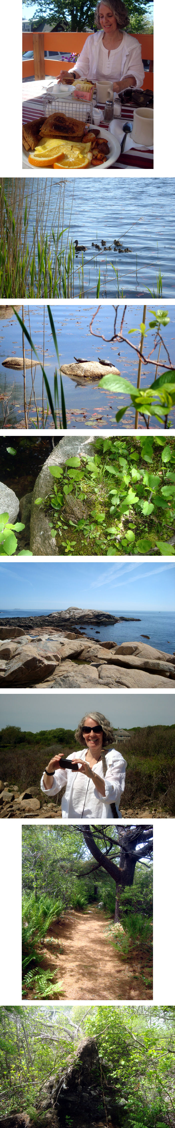 I got to spend a very special morning with Ann Kennedy on Tuesday, toward the end of her and Bob’s month-long annual visit to their beloved Gloucester. We met early for a delicious and hearty breakfast at Sailor Stan’s, then went for a nice long walk out Eastern Point, to the spot I now call Evelyn’s Point, beyond the Retreat House and Brace Cove. We encountered many beautiful and fun things along our journey, including a mother duck with her ducklings (she had to be babysitting, as they couldn’t all have been her’s) and two turtles sunning on a rock in Niles Pond, plus a dreadful and vicious bullfrog that Ann attempted unsuccessfully to capture and bring to Joey. This has become one of my favorite spots to walk to and it was nice to be able to share it with Ann, who had never been there. The trails through the woods are soft and peaceful. At one point we were forced to stop and turn back because of a large uprooted tree that made the path we were on unpassable. It was a special time with a special FOB and friend, and I look forward to a repeat when they return next year.