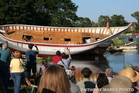 The crew starts work on the port side “car”, upon which Ardelle will lean for the “Essex side launch”