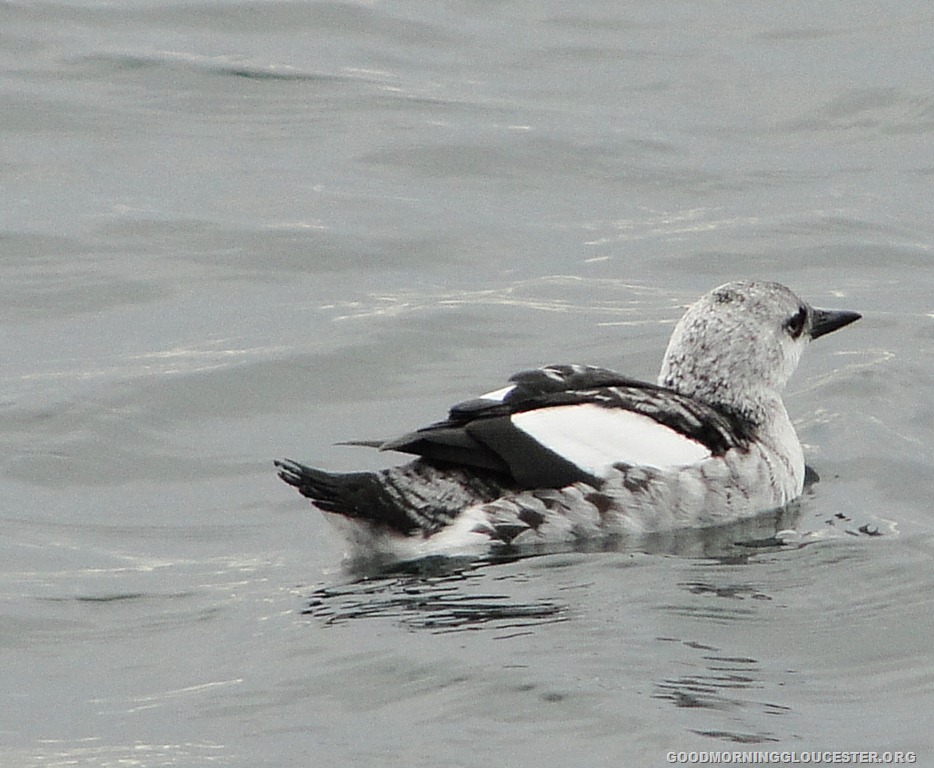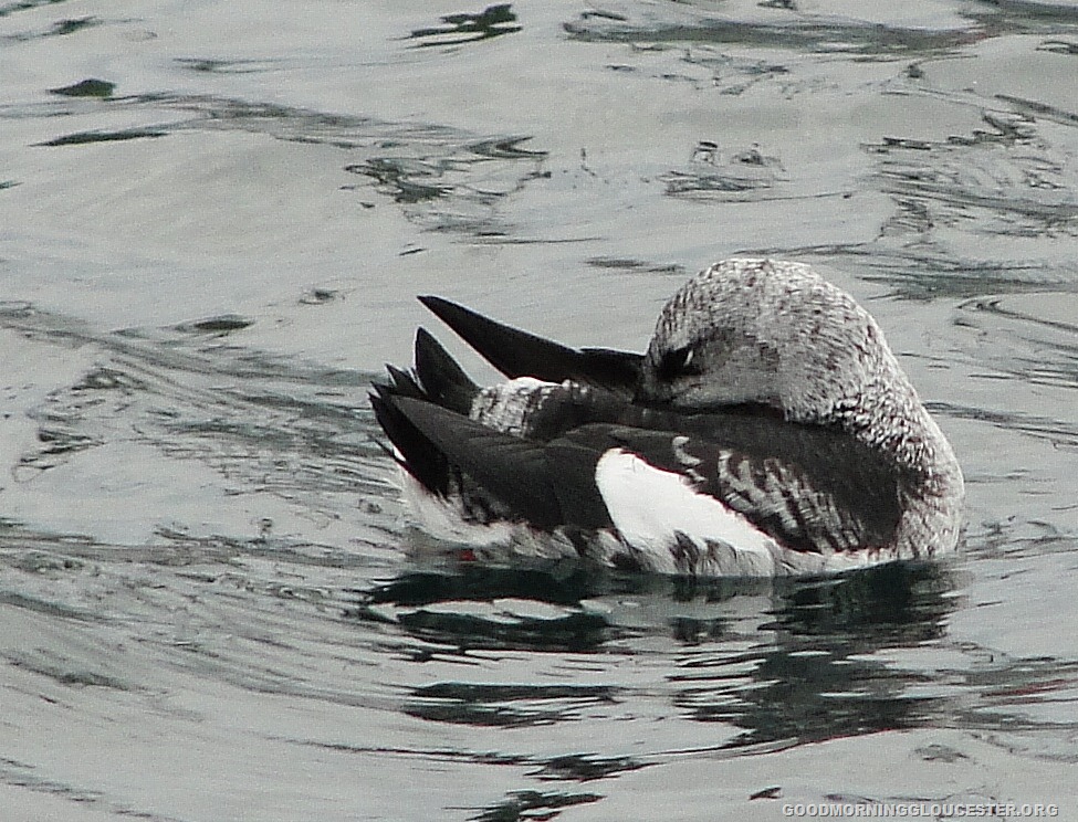 It’s wings were outlined with a thick black band around pure white centers. It had a black bill and orange/redish feet. The feet looked like they were positioned toward the very rear end of the bird as well.