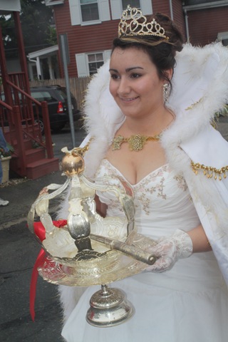 The History of the Holy Ghost Feast The original Holy Ghost Feast was held during the reign of Elizabeth (Isabel) of Portugal, who lived from 1271 to 1336. She was known as a peacemaker and as “The Holy Queen” who was devoted to the Holy Spirit. She built a church dedicated to the name of the Holy Spirit in Lisbon and often demonstrated her devotion to her people and their well-being. There are many stories of the Queen’s piety and service, but the dearest to the Portuguese people of the Azores is the one explaining their devotion to Queen Elizabeth and the Holy Ghost. In the 13th century, the Azores Islands suffered from many violent earthquakes and volcanic eruptions. The most seriously hit was the Island of Pico. The people of these Azores Islands could not survive the drought, crop failures, and famine that now plagued them. They gathered together in prayer to the Holy Ghost for help. On the morning of Pentecost Sunday, there was a great rising sun, and the people of these islands saw in the sunrise a ship coming into the Port of Fayal. This ship was laden with necessities of life. The food was distributed among the people of the various islands, and they were very grateful that their prayers had been answered. When their Queen heard of this providence, she organized a solemn procession in honor of the Holy Ghost. Accompanied by her maids she carried her Crown through the streets of Lisbon to the cathedral, where she left it on the altar as an offering of thanksgiving for the favors the Holy Ghost had given her people. In addition, she began a tradition of feeding the poor at Pentecost. Each year she chose twelve people to whom she gave a new suit of clothing and personally served them a meal at her table. The people of the Azores vowed that they and their children and their children’s children would commemorate the day by giving thanks to their Queen for the sacrifice she made. Since then, many Portuguese churches have displayed replicas of her eight-sided crown in remembrance of her goodness and God’s grace. Later, in the 16th century, the church canonized this holy queen in recognition of the miracles that were attributed to her pious life