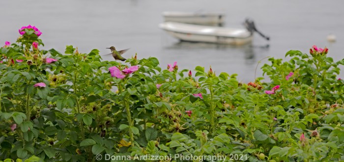 As I was walking Shore Road on Wednesday there were many hummingbirds eating the beautiful beach roses.