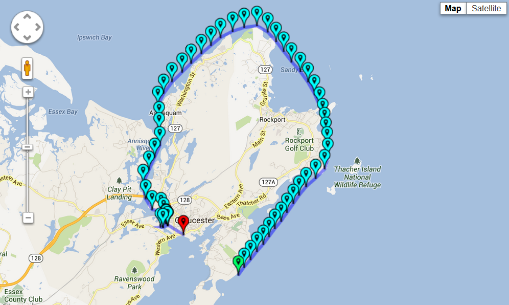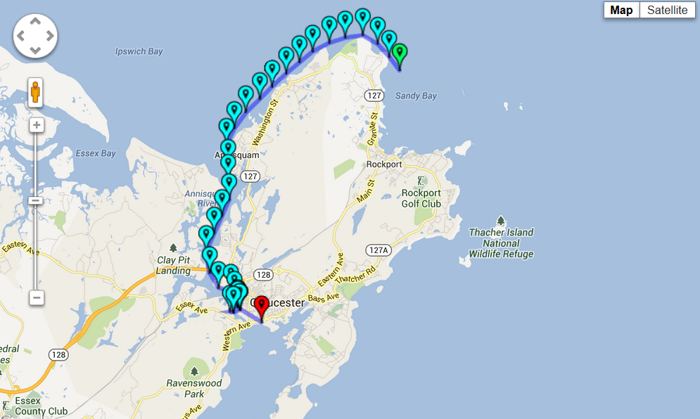 We have 38 days to figure it out. Rubber Duck will post a test run on Facebook or here. Anyone out there who has experience with RaceJoy please speak up in comments. It would be cool to see all the contestants race around Cape Ann but that is a lot of dots. Ask your friends who race in triathlons. I bet they have used it.