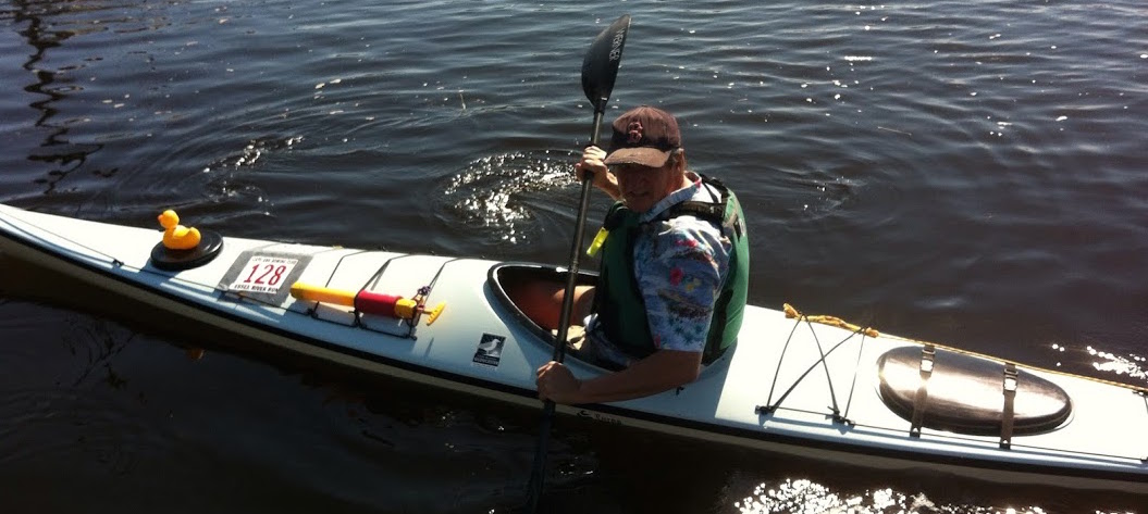 Rubber Duck and I have done this race five times and it is great fun, uh, a wonderful test of endurance, uh, an accomplishment for an old fat dude who sits in front of a computer too much of the year! It is a staggered start so a standard sea kayak gets to go before all the high performance vehicles paddled by sinew and muscle. It is entertaining to watch them all fly by on wakes you could water ski behind.