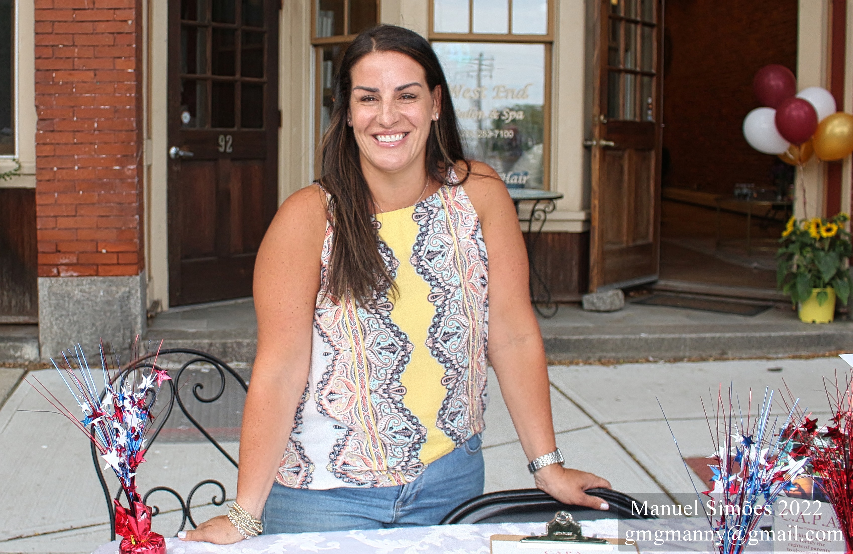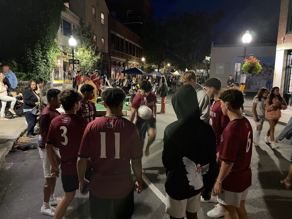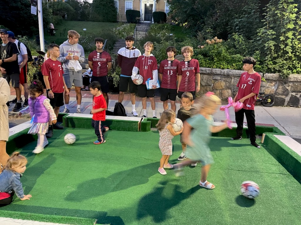 Gloucester’s Main St. Block Party traditions: Soccer boosters had a table and the mini turf for future soccer players to kick and play.