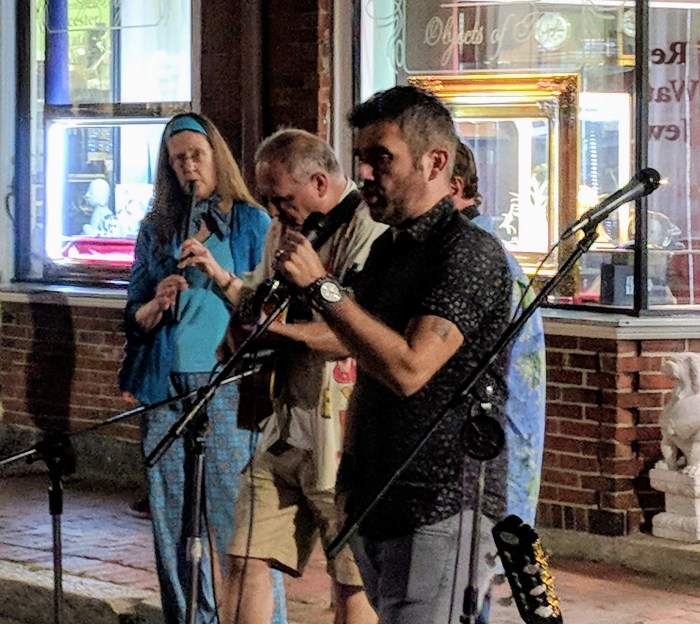Mystery musicians and tenor soared through melodies on the West End by Caffe Sicilila and Short and Main, Gloucester, Massachusetts, for the downtown block party. I hope to add their names so I can credit the beautiful impromptu arias! Snippets of and ‘O sole mio
