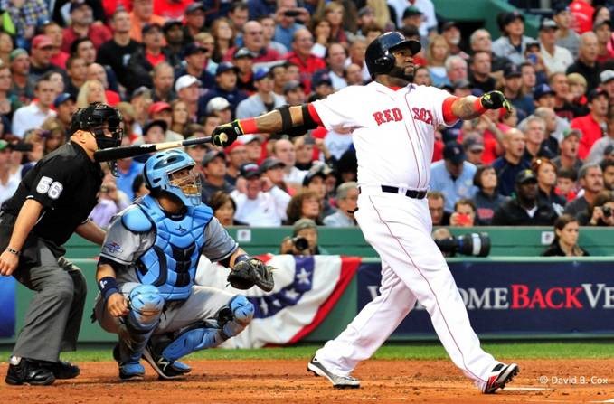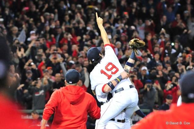 Both are great photos and deserve high resolution inspection. See the stands in David’s– all the ohs and awes. The second photo is by Damian Strohmeyer on assignment from Sports Illustrated, published in the October 14, 2013 issue, pp 30-31 double page spread. We could do this comparison for the Koji Uehara leap-lift seen round the world, seconds after the Red Sox advanced to the 2013 World Series Game (various angles made it on many “pictures of the year” lists for 2013.) Sports Illustrated, national print media, game on! When Cox has a chance to be in the right seat at the right time, he doesn’t miss.