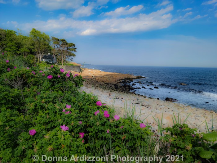 Beautiful Beach Roses and blue ocean makes for a great walk