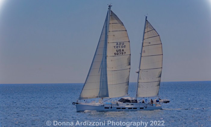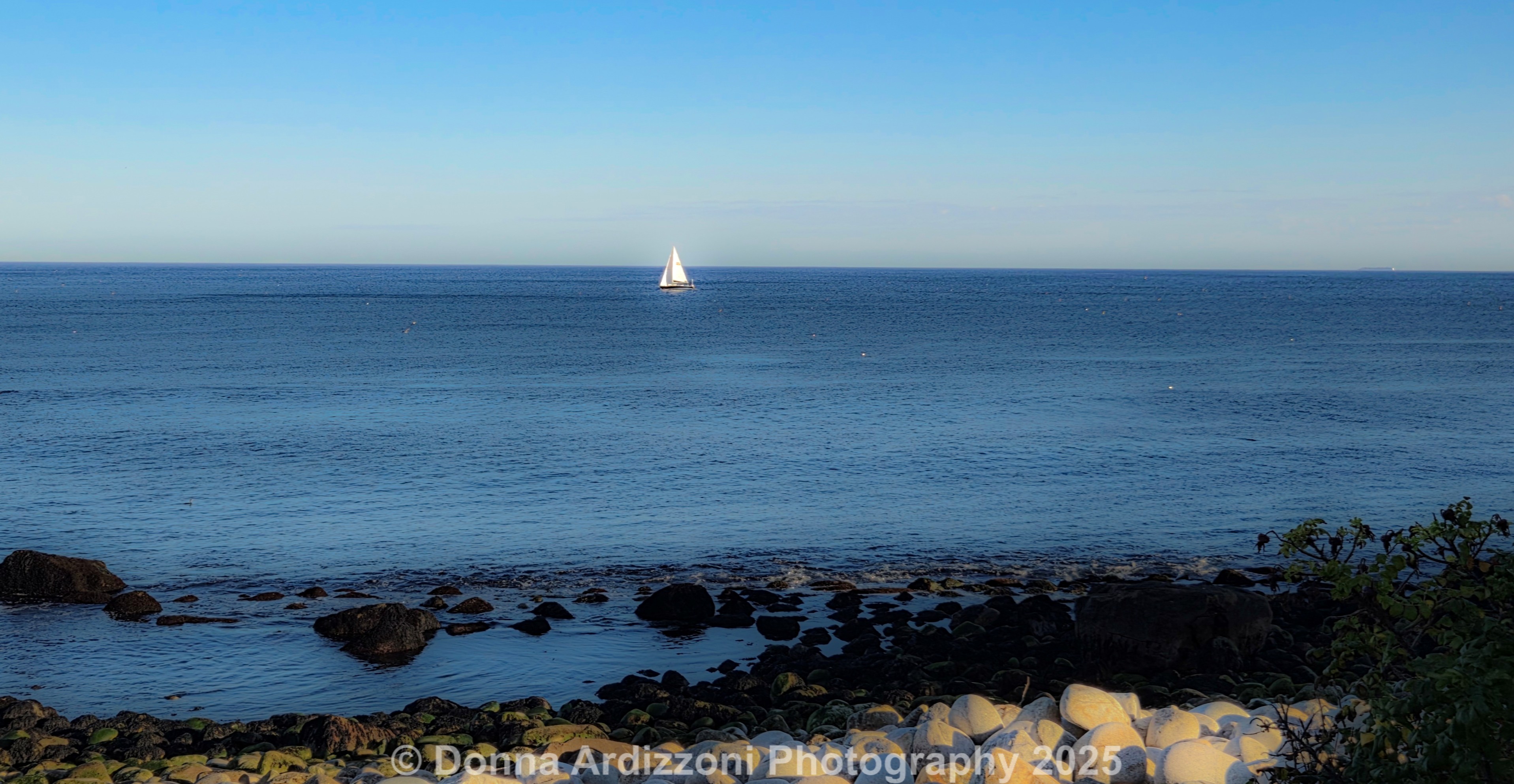Walking Shore Road on these beautiful fall days, the ocean and sky are so blue. There was a small sailboat going by, all lone.