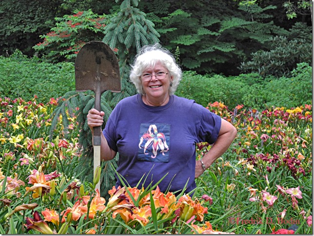 Bobbie is a hand’s on gardener. She’s a successful garden designer, which is her main business, but she’s also passionate about dayilies. Who else on God’s earth would grow 800 varieties of a plant, and it’s not her major source of income. It must be LOVE.
