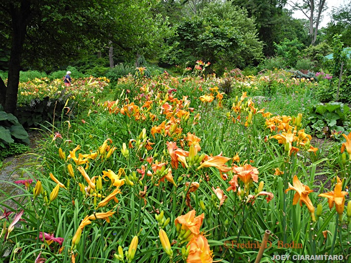 I knew Bobbie Brooks 30+ years ago when she had an antique shop in Lanesville. Now she’s doing amazing work as a professional garden designer, plus growing and creating hybrids of her own daylilies. Her fields are expansive, covering over one acre, but you’d never know it driving down Rt. 127. She has 800 varieties of hybrid daylilies, the "summer jewels of the garden." I learned much about daylillies in my short time shooting in Bobbie’s one acre garden.