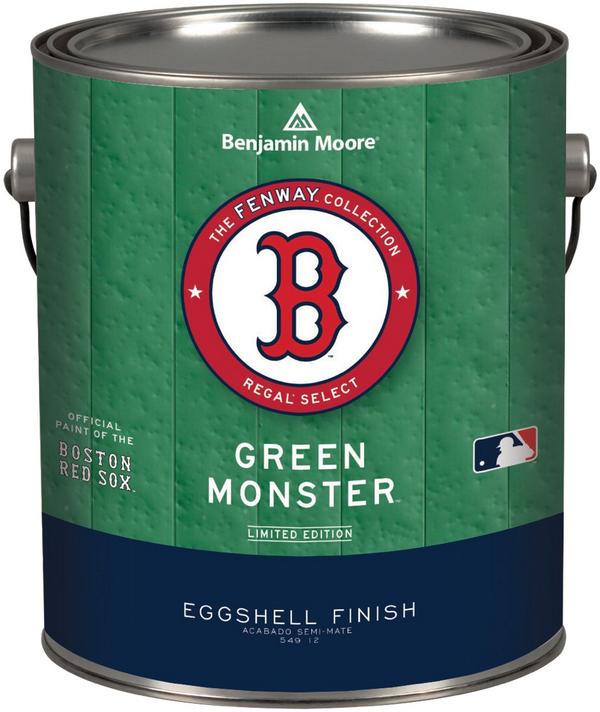 Green Monster is part of Benjamin Moore’s newly introduced Fenway Collection. See also Boston Red, Boston Blue, Foul Pole Yellow, and Baseline White.