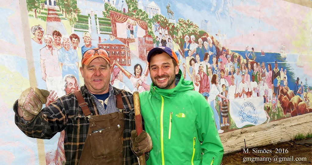 Selection of Gloucester’s downtown storefronts in morning light and seasonal swag December 2020.