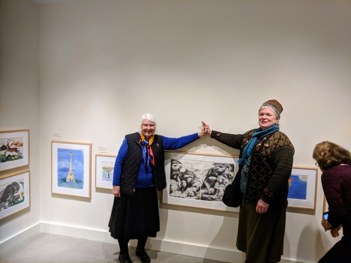 Photos above show happy results from their support — installation views at Cape Ann Museum from the travel exbibit Once Upon a Contest Selections from Cape Ann Reads