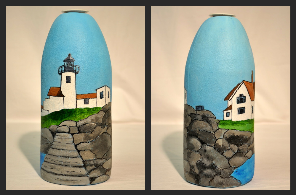 After much painstaking work and a couple set backs, you may have already seen Deb Clarke’s buoy on the blog yesterday! It came out AWESOME and today you have the chance to bid on it in case you can’t make it to Art Haven’s big buoy auction event on Friday night…