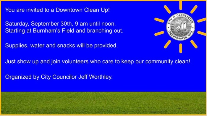Can you believe itโs our 5th annual clean-up? This was the Good Morning Gloucester post a few years back by Joey, the World’s Greatest Headline Writer: “Burnham’s Field Getting All Clean And Shit! Lend a Hand April 21st!”