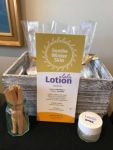 Our pampering gift baskets make wonderful gifts. We can personalize them for you. This one contains a Mother’s Day card, handmade organic soap and hand cream, Tin Can Sally earrings, and a glass nail file.