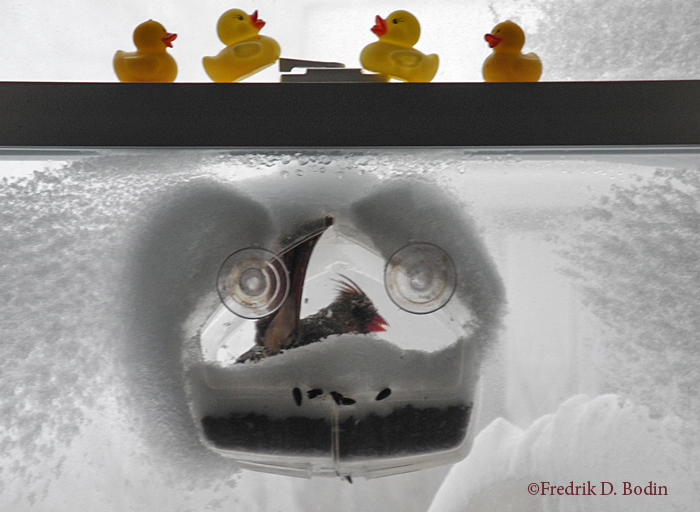 Cardinal on a Feeder, Blue Jay becomes Prey