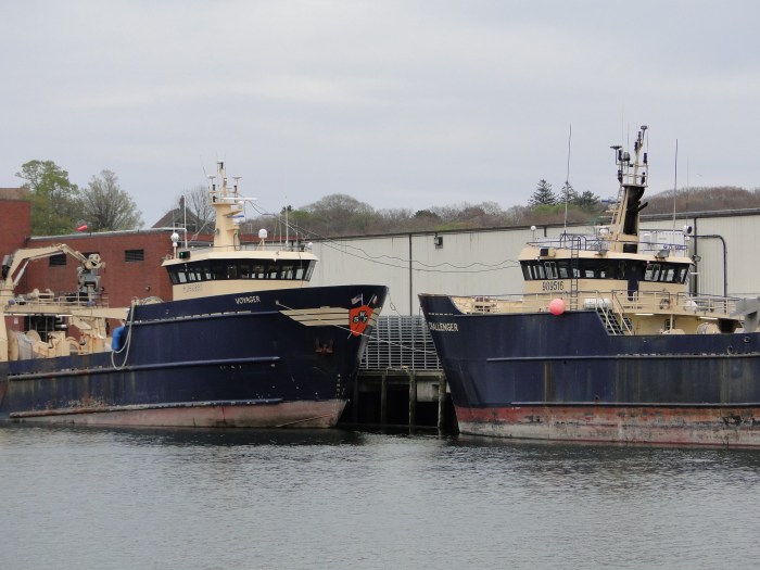 Kathy and Marty spent some time at the Jodrey State Fish Pier this week to see what was going on. This week, most of the activity centered on the herring and mackerel fleet consisting of the Challenger, the Endeavour and the Voyager. The fleet’s catch is processed whole and sold frozen as food to foreign markets or as fresh, frozen or salted bait for domestic use.