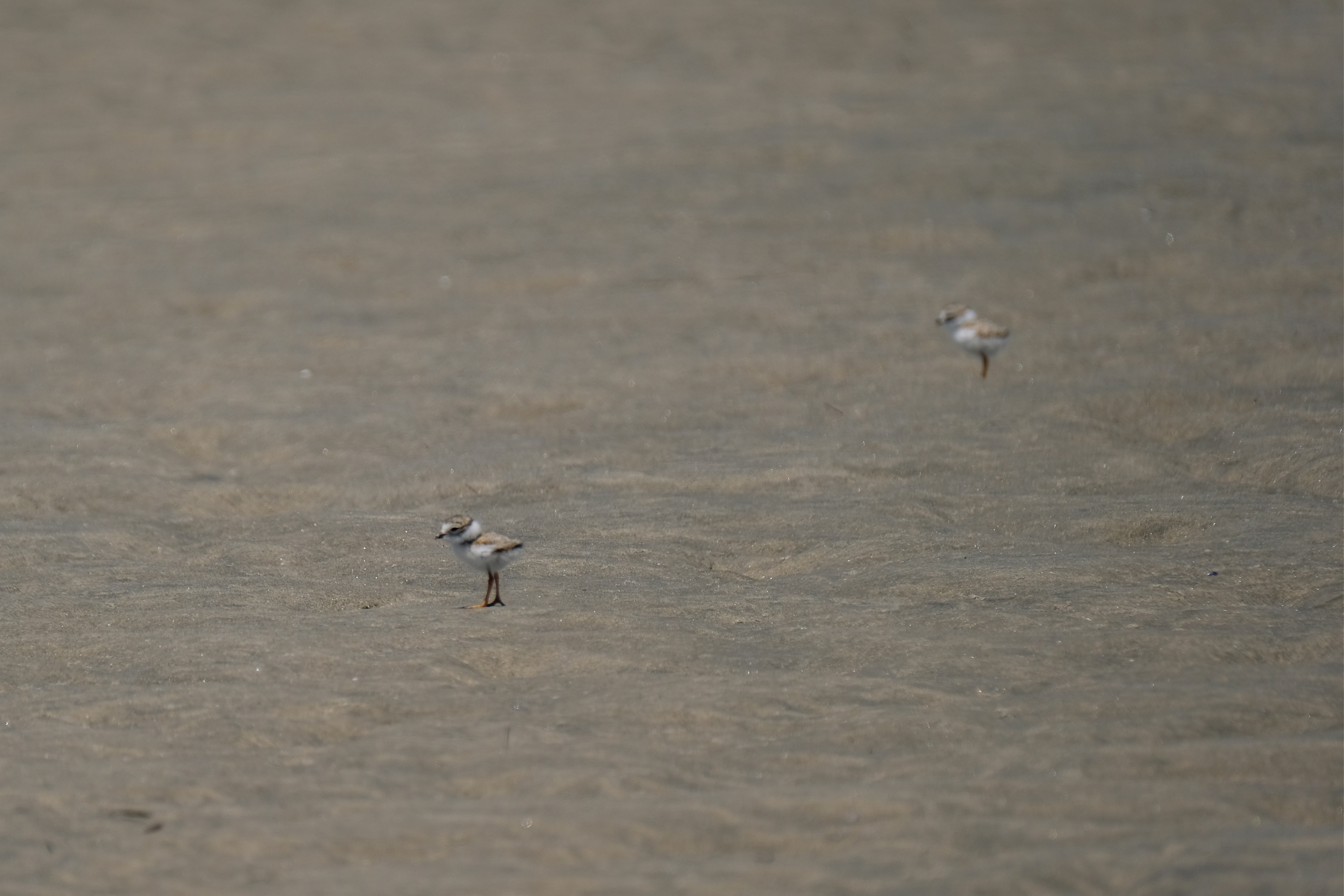 Every morning the beach rake drives over the wrack line where the fledglings and adults are foraging. It was very scary when the chicks were younger. At thirty-five-days old, the birds can fly away to escape the heavy equipment but usually choose to run instead. PiPls are better camouflaged when they don’t fly, and that is why they often run at top speed to escape danger, rather than flying.