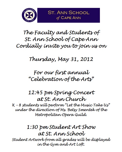 St. Ann School Celebration of the Arts, today starting at 12:45PM!