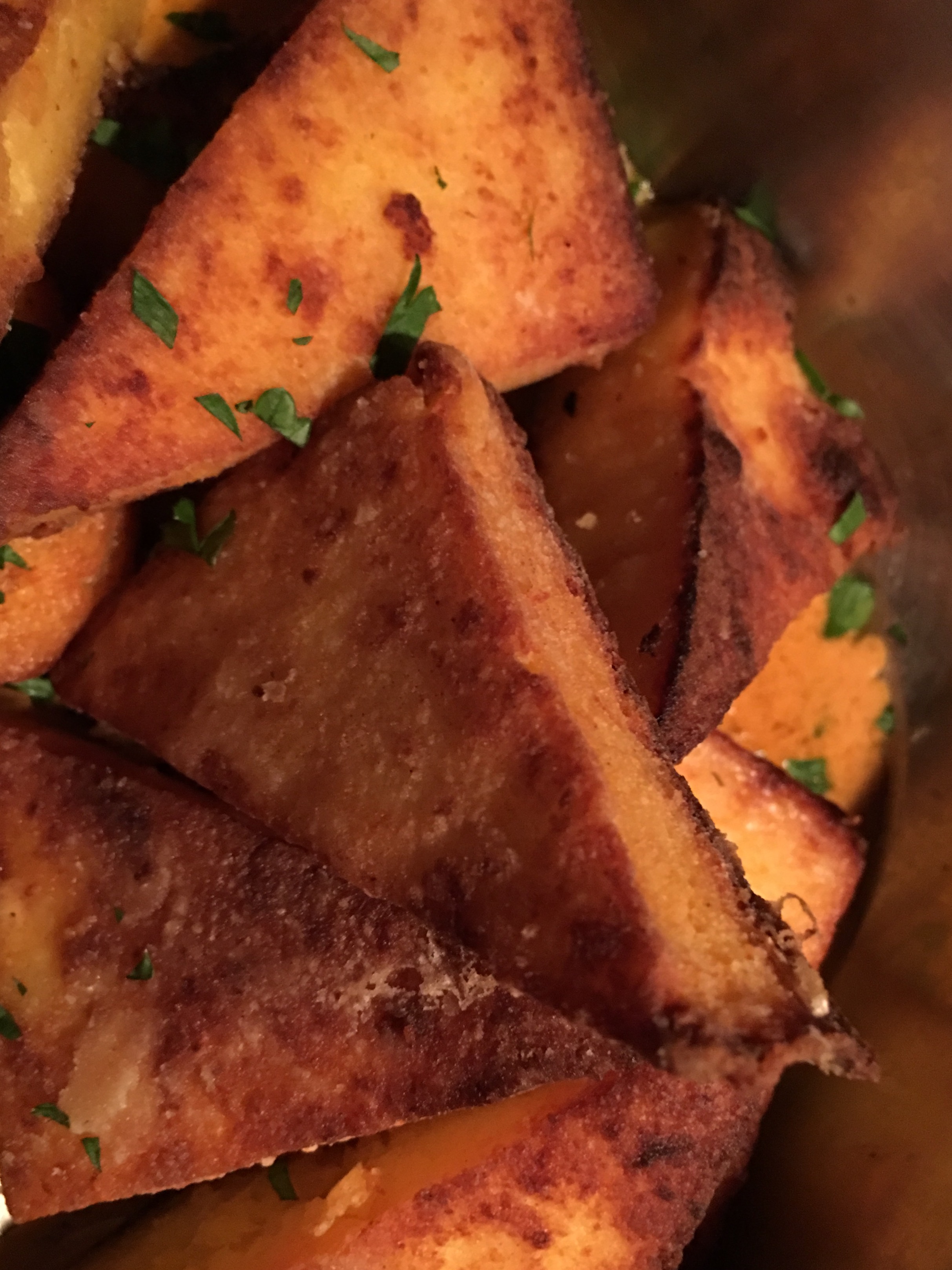 Ken’s golden polenta, crispy on the outside and tender on the inside