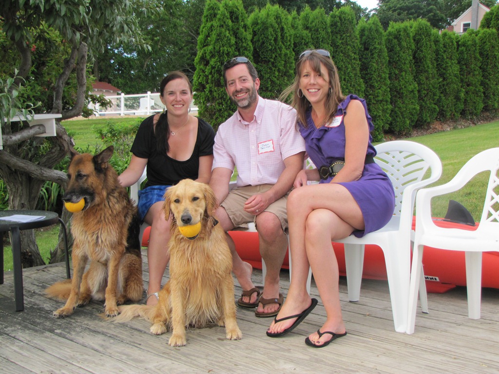 Chef Kim Johnson, Shelly and Jason Sevinor of Salem Plumbing in Gloucester with Dr. Anne’s dogs, Sangha and Kami