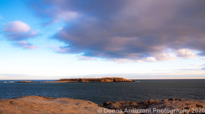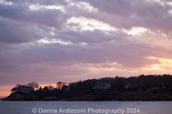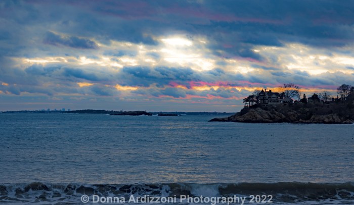 Finally, with no wind and mild weather, we were able to walk Shore Road. The sunset was amazing with colorful clouds.