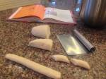 Divide dough into 4 portions and knead in “mix ins” as desired. Form into 4 loaves and bake two loaves to a sheet. I used a couple of tablespoons of each mix in per batch.