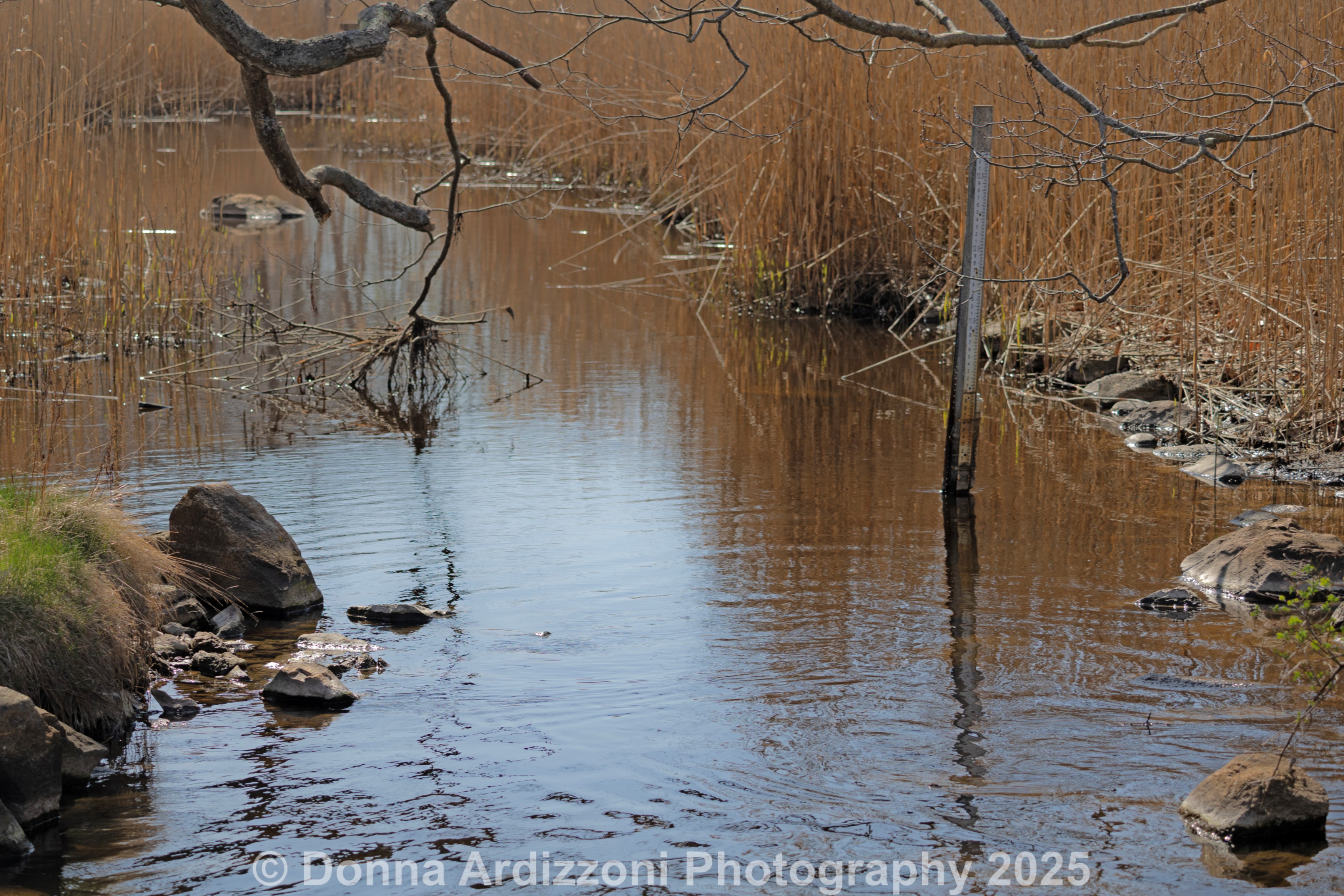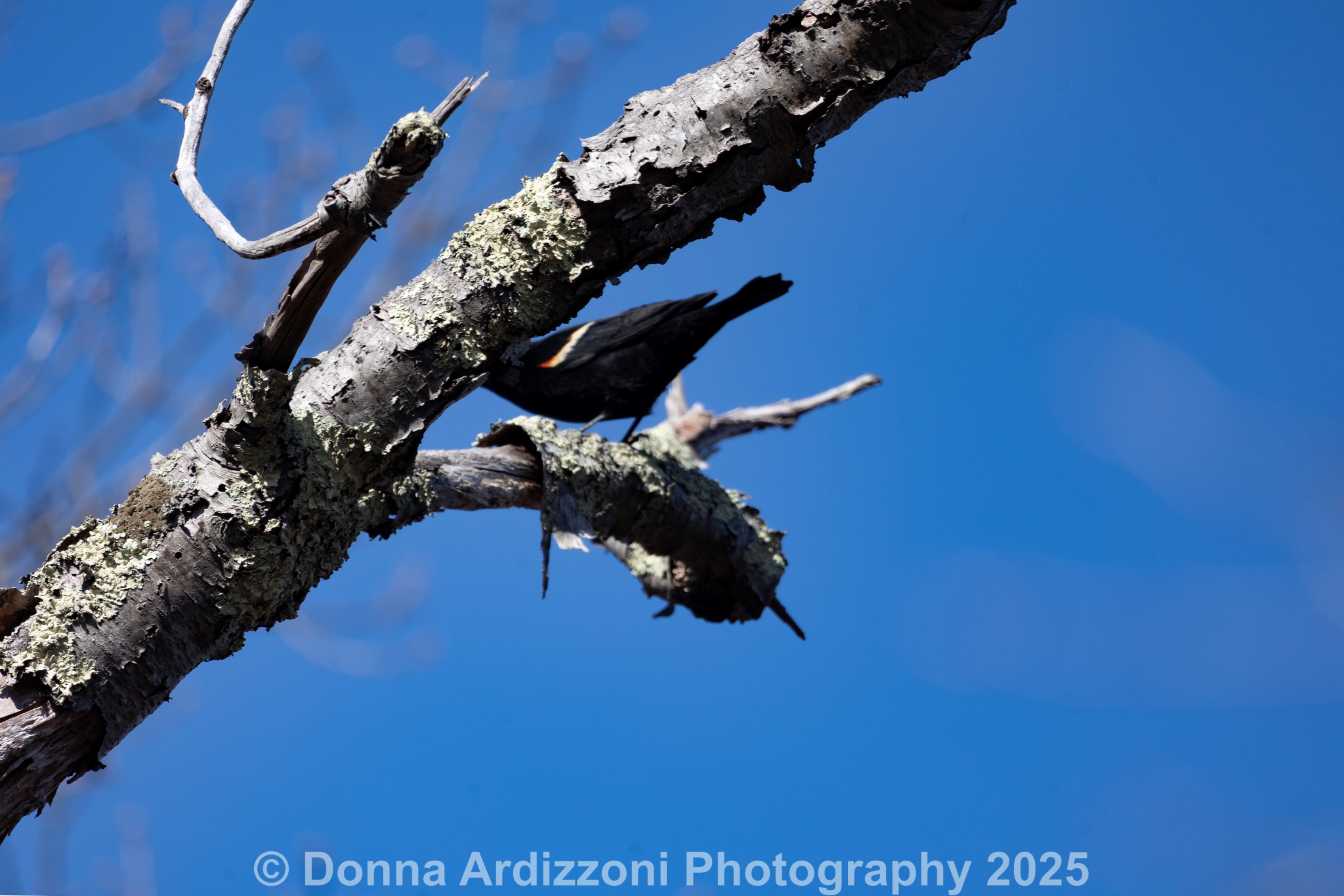 Red Winged Black Bird and the stream over the bridge