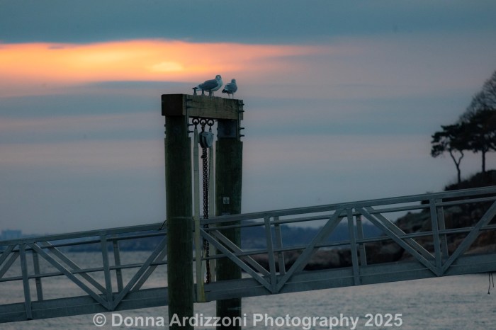 On Wednesday evening, the sun set at 4:23, so early, but the sunsets show the beauty.   Even the seagulls like to hang out with the Sunset Cloub.