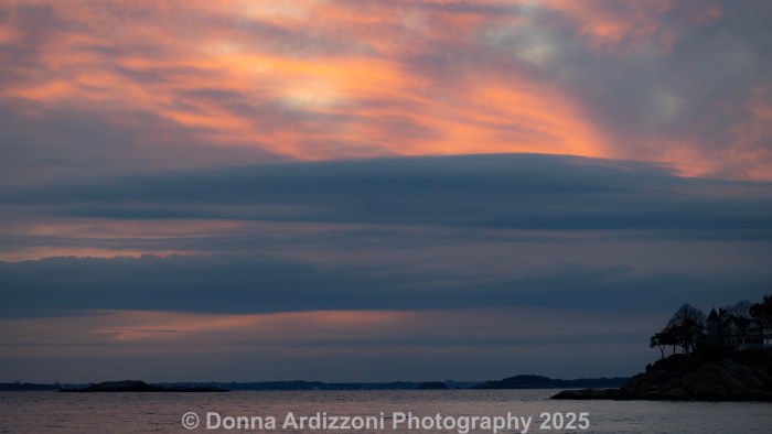 The snow dusting Coolidge Point on Tuesday was serene.  The sunset was hidden by the clouds, but still pretty.