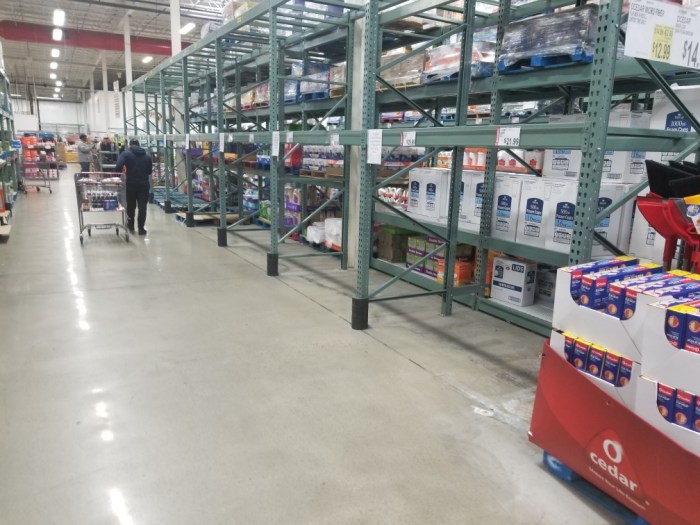 Not just UK apparently- here’s the toilet paper aisle at BJ’s today. Courtesy photo with note- “The shelves are empty here. The economy will be fine.”