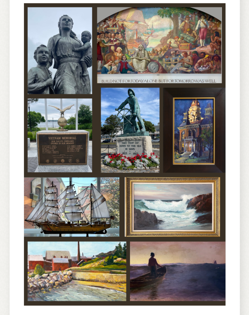 Art and culture have been laced throughout Gloucester’s history. City staff, departments, partner organizations, artists, and volunteers have kept detailed inventory checklists and care of a world class municipal art collection decade by decade for more than a century. Several lists were managed by American art luminaries. Here is a City Hall example from 1937, “A Catalogue of Murals and Decorations in Gloucester Done by Gloucester Artists in the Employ of the Federal Art Project”.