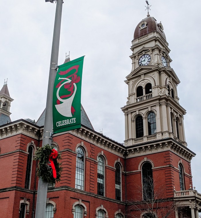Seasons Greetings #GloucesterMA | City Hall, wreath, and banner