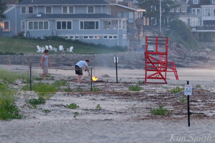This morning I arrived at 5am to check on the plovers and two young guys were building a fire right next to the Piping Plover sanctuary. I watched from a distance for a moment as they built up the fire, and then they crossed the beach to leave. I called the police to come put out the fire and asked the guys, hey what’s up with the bonfire? Their mysterious response was that they were coming back to add more wood. They left via the footbridge and a few seconds later, the police arrived to extinguish the fire.