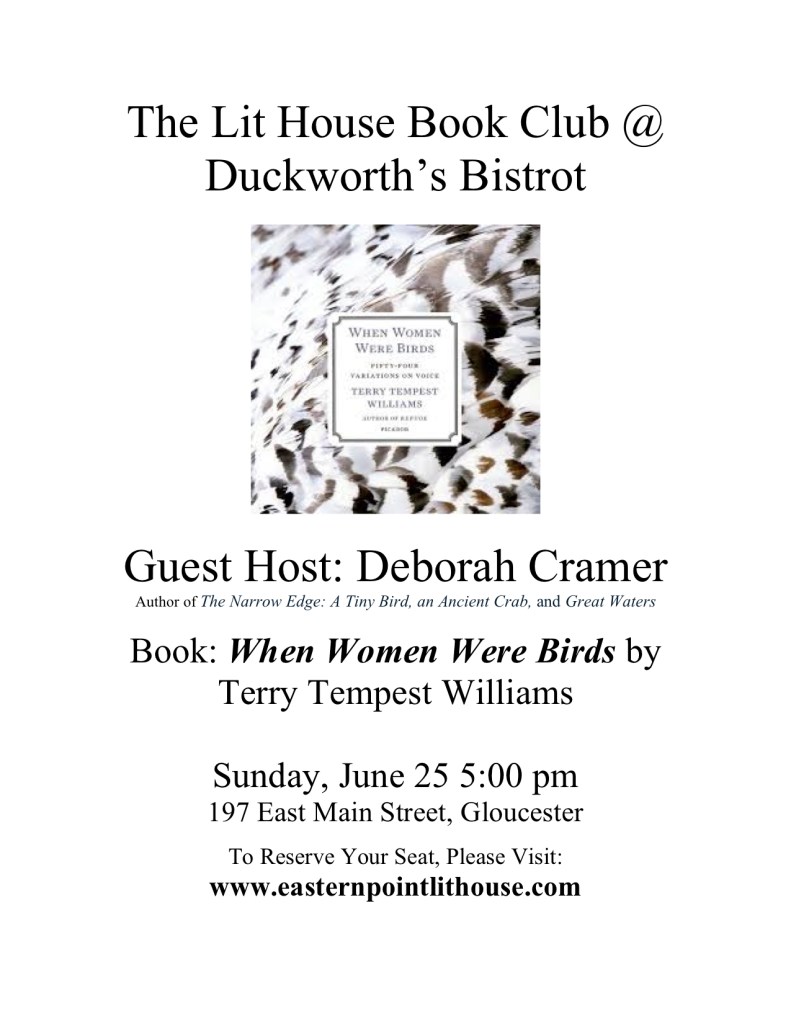 Fresh from a National Academies of Sciences talk and before taking flight to the Indiana Dunes Birding Festival (hyperlinked because I know you’re going to want to Google it), multi award-winning author Deborah Cramerwill give a lecture about the making of the Narrow Edge on Thursday May 4th from 7-8:30PM at Sawyer Free Library, 2 Dale Avenue, in her hometown, Gloucester, MA. The talk is sponsoredĀ by the library, Eastern Point Lit House, Kestrel, and The Gloucester Writers Center.