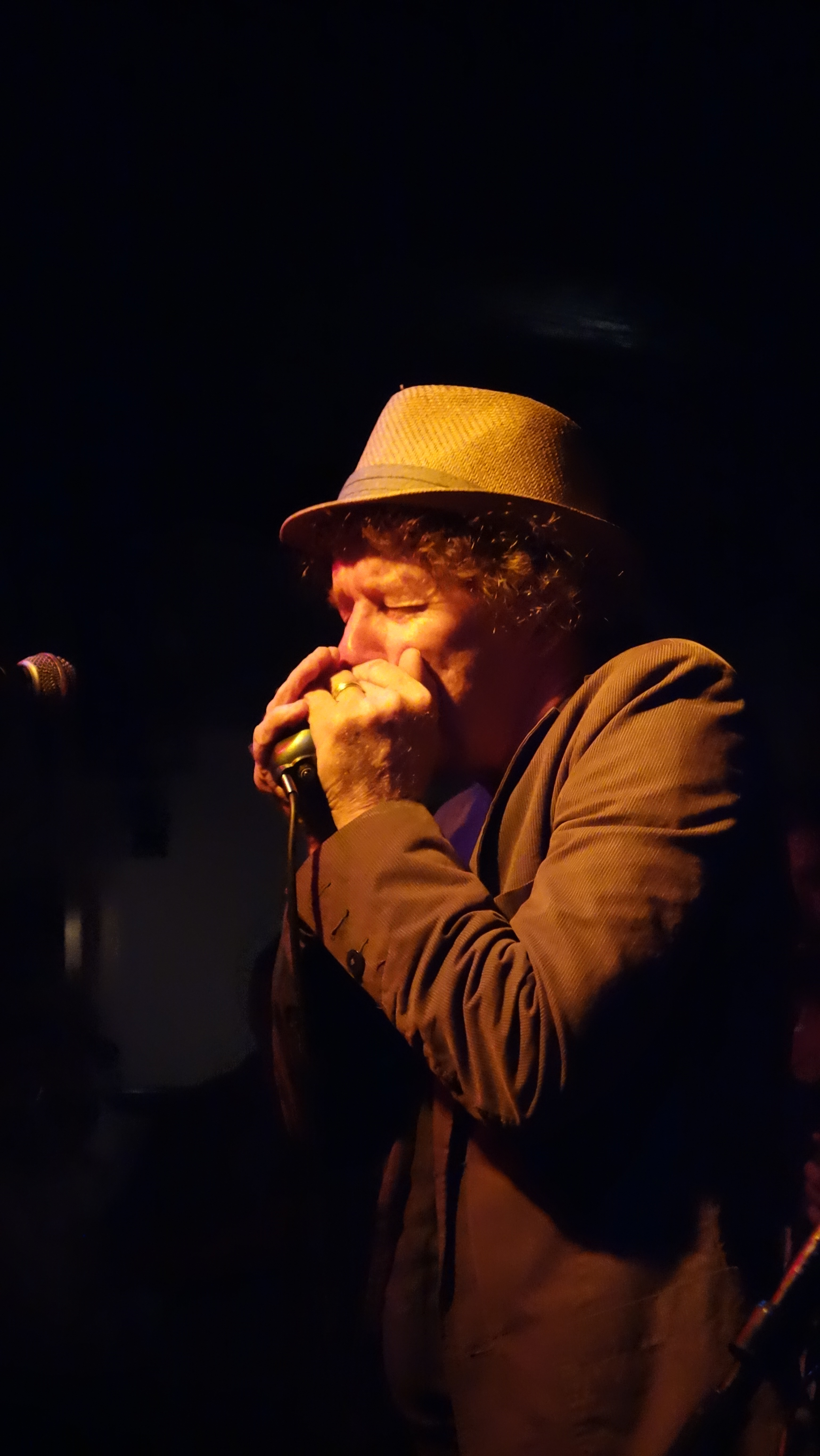 Dennis, of the oleaginous windpipes and great collection of hats, is truly a master of the blues. Not only that, but of many other styles, too. Why am I telling you this?? You should already know! His gunzel Matt Stubbs has travelled the world many times around backing up many famous cats. A sizzling guitarist, watch his fingers: now you see it, now you don’t. And Chris? Well, he’s the de facto Rheumful o’ Blooz agitprop, reedy to scramble your eggs with his whisking style.