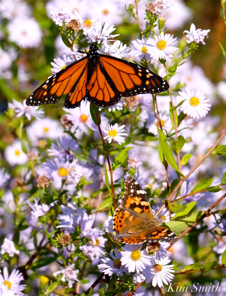 Compare the larger Monarch (top) to the smaller and richly patterned Painted Lady.