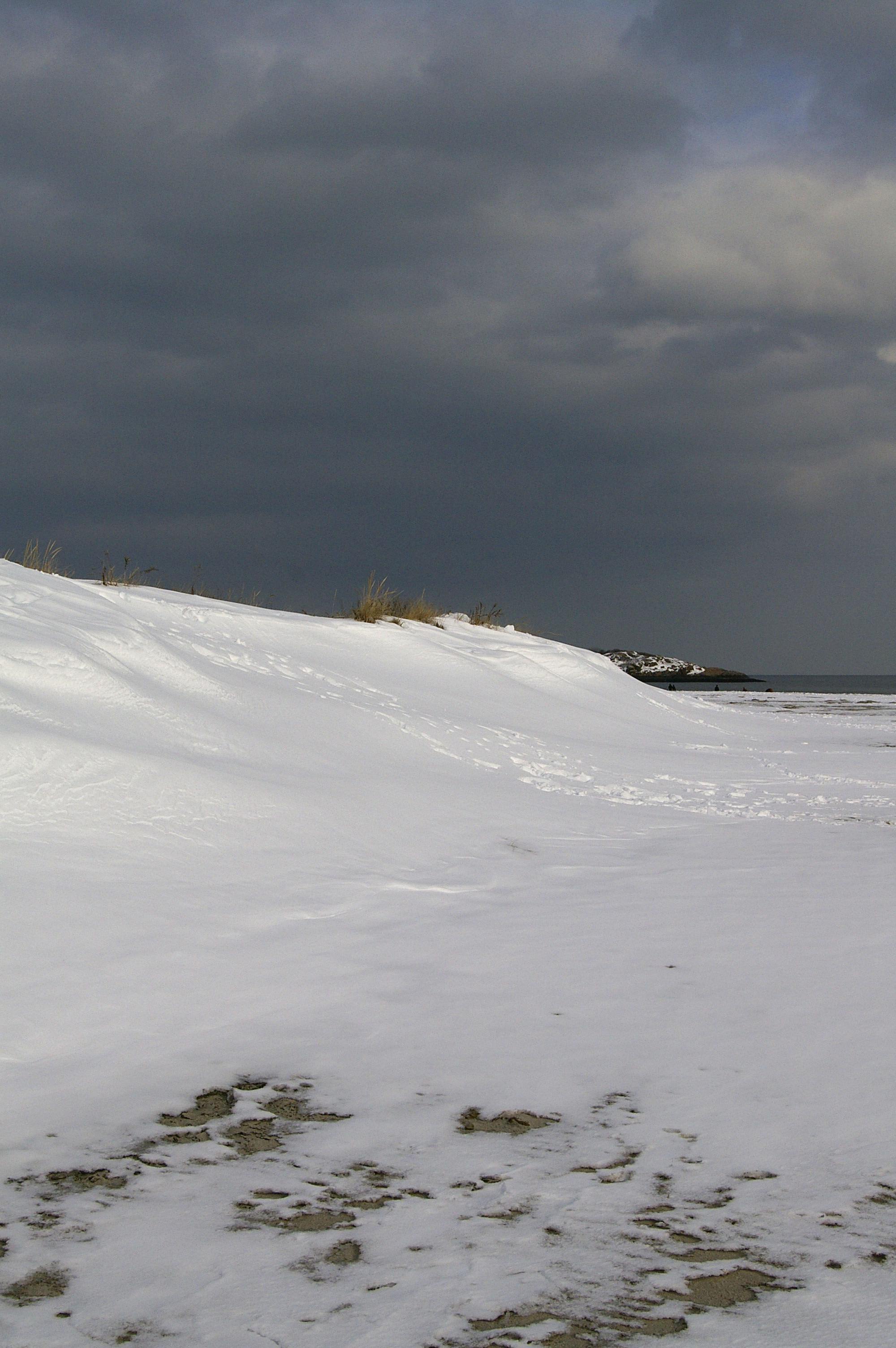 I believe she’s a female, although the lightest females can look like the darkest males. She appeared largely unperturbed by the gaggle of photographers that came and went. The Snowy flew across the dune for a few moments, but then flew back to roughly the same spot; in both locations she was somewhat protected from the blustery wind.