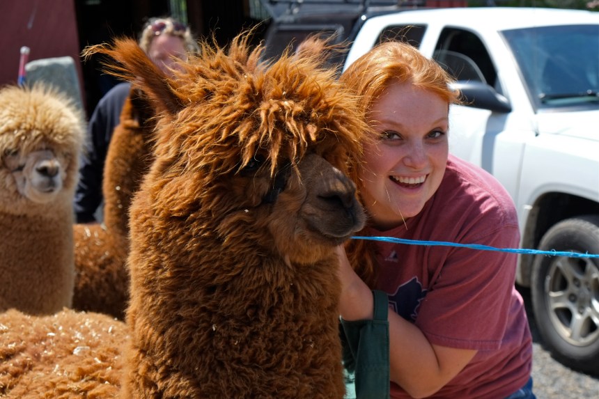 Family and friends lend a hand for alpaca shearing day.