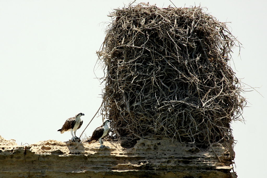 The male gathers the nesting material while the female builds the nest. Osprey return to the same nesting sight and nest, building and rebuilding the nest up over a period of many generations. The man made nesting platforms that we see in Essex County are relatively new nests. Osprey nests that are built up over decades can reach 10 to 13 feet deep and 3-6 feet in diameter, large enough for an adult to sit in.
