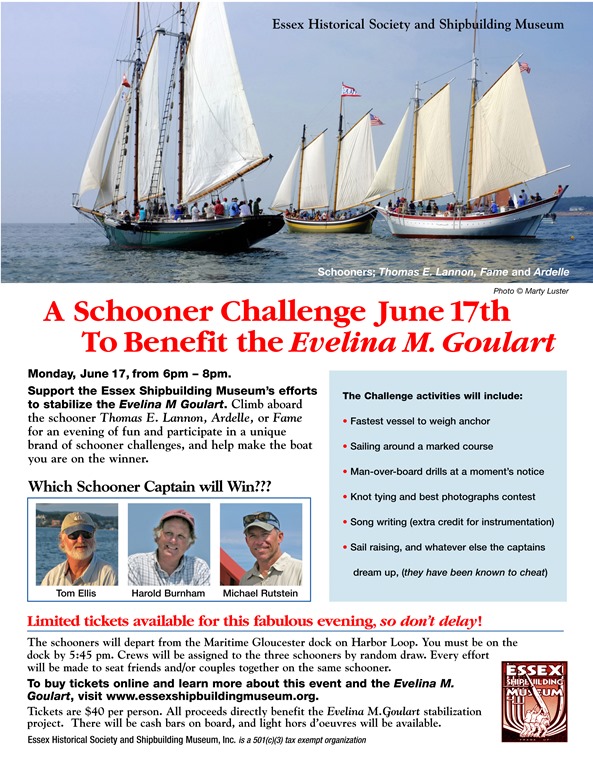 THE SCHOONER CHALLENGE out of Gloucester Harbor on Monday, June 17th 6pm-8pm.