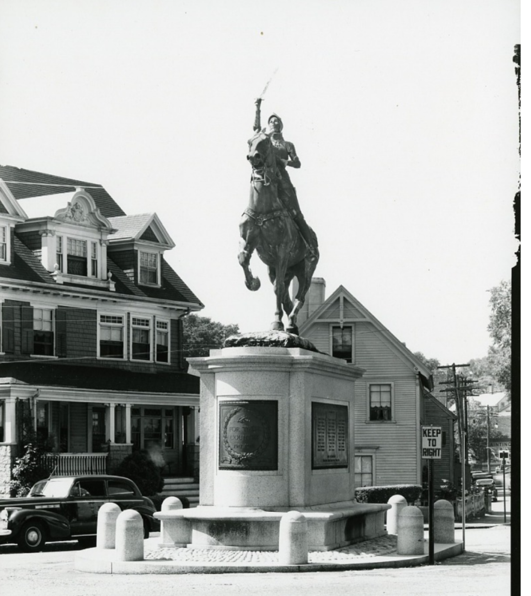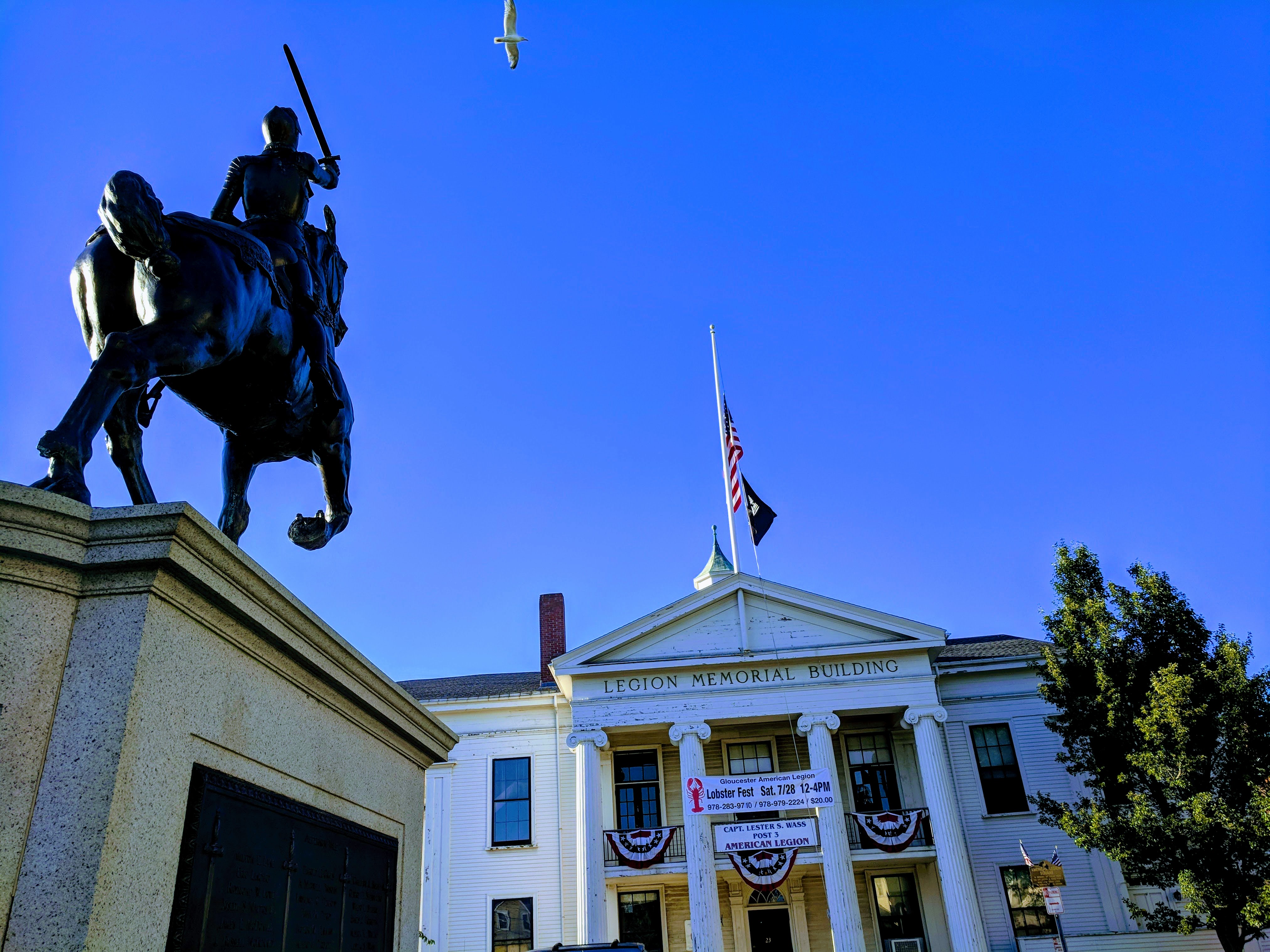 Preceding the dedication of the base was the dedication of the legion hall, the old Town Hall of Colonial design, restored and enlarged, with the unveiling of an oil painting of Capt. Lester S. Wass of this city, who lost his life in the Argonne while leading a company of marines. The painting is the contribution of Eben F. Comins, a Boston artist and summer resident of Eastern Point.