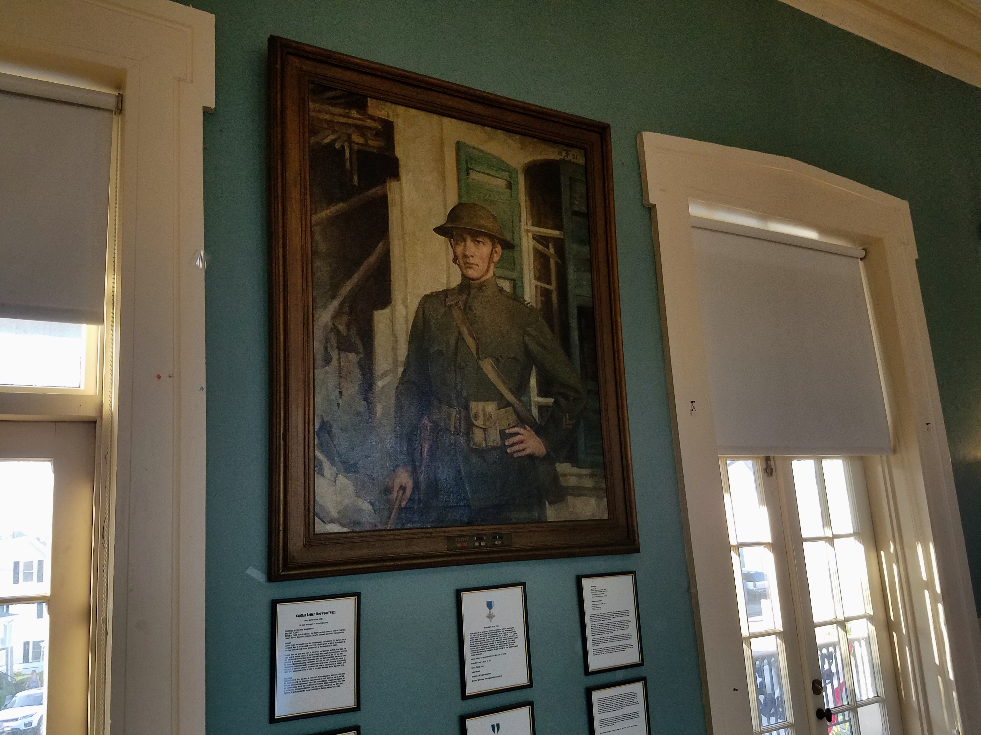 photo credit above: interior c. ryan 2017 (installation view of Eben Comins portrait of marine Capt. Lester S. Wass. The artist gifted the painting as part of the Legion Post dedication in 1921. Legion Post Honor books to the left.) Exterior: Smithsonian collection (b&wh); c. ryan 2016