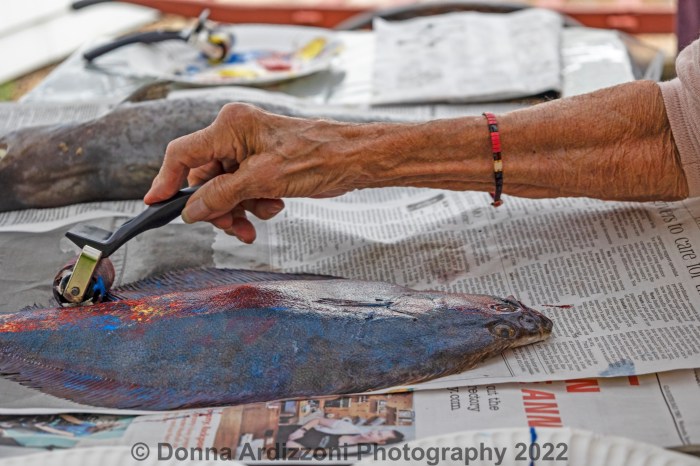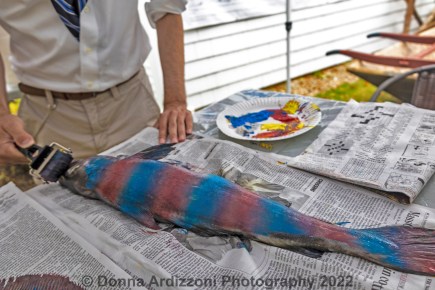 During the Art Reception at the Manchester by the Sea Historical Society on Sunday, there was a demonstration on the art of fish printing. Such fun.