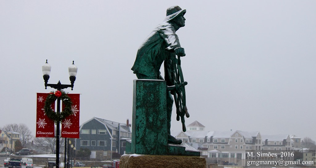The Gloucester Fishermen’s Memorial in a fog Photo Kathy Chapman
