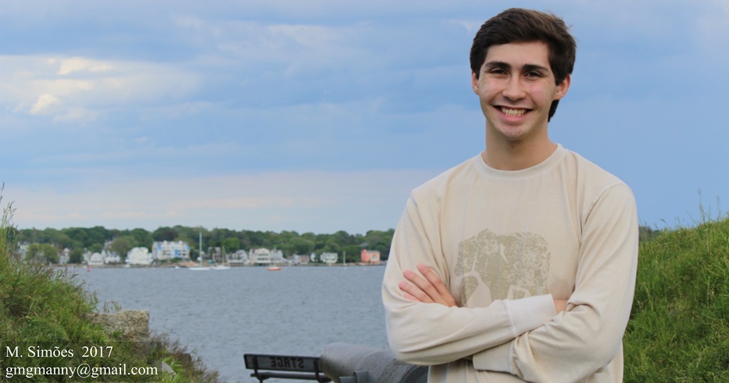 The sun sets over Gloucester Harbor and the Fishermen’s Memorial.
