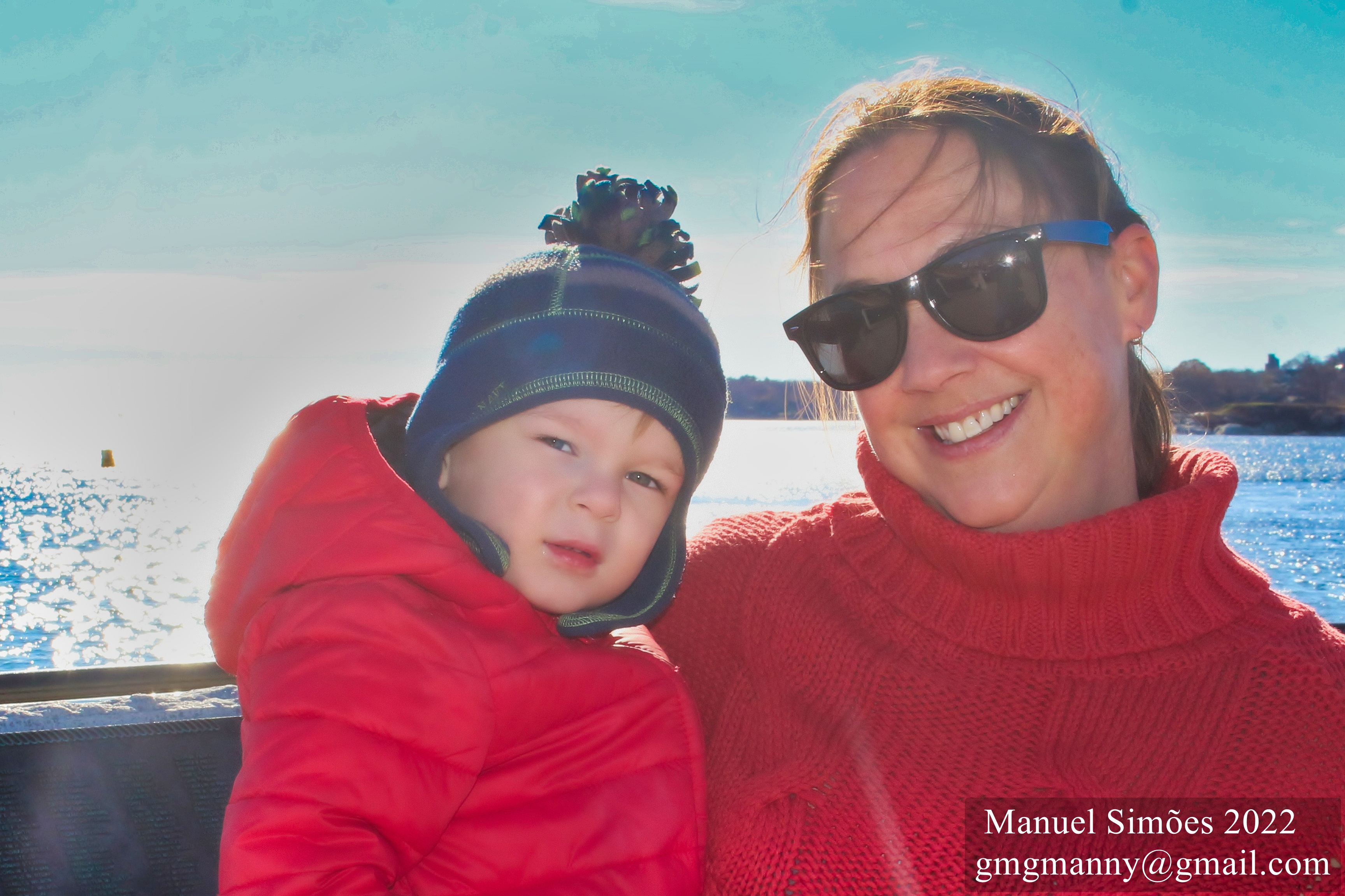 On a cold day walking the boulevard she is protecting her children.